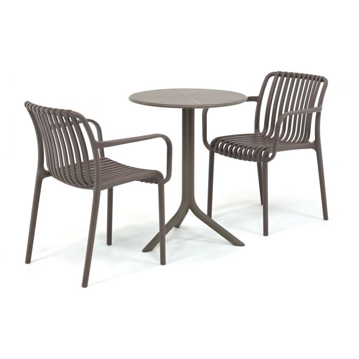 Geef jouw balkon of kleine terras een stijlvolle upgrade met de Barbados Ravella/ Nardi Spritz bistro tuinset in de elegante kleur taupe. Deze compacte bistroset bestaat uit de Nardi Spritz bistro tuintafel in de kleur Tortora en twee Ravella tuinstoelen van het merk Barbados. Met een diameter van ø60,5 cm en een hoogte die je kunt aanpassen van 40 tot 76,5 cm, past de bistrotafel moeiteloos in elke buitenomgeving. Of het nu gaat om een knus hoekje op je balkon of een klein terras, de Spritz bistrotafel biedt de perfecte mix van stijl en functionaliteit. Bovendien zijn de Ravella tuinstoelen stapelbaar en licht van gewicht, waardoor je ze gemakkelijk kunt opbergen en ruimte bespaart. Dit maakt de bistro tuinset ook ideaal voor horecagelegenheden, balkons of kleine terrassen.